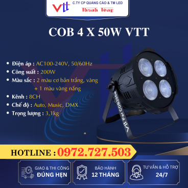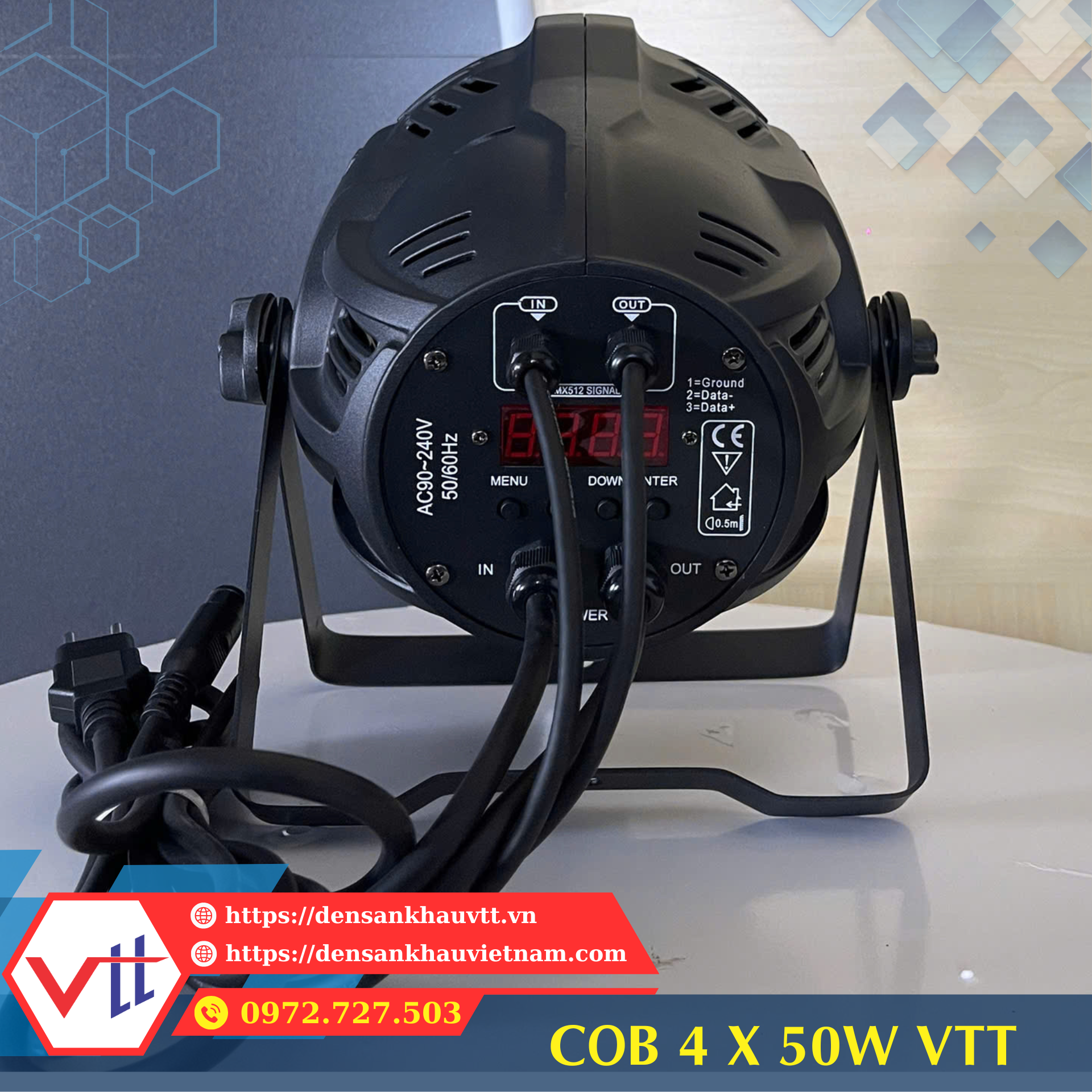 - Model: Par COB 200W - Điện áp: AC100-240V, 50/60Hz - Công suất: 200W - Màu sắc: 2 màu cơ bản trắng, vàng, Vàng nắng tạo nền đánh mặt - Kênh: 8CH - Chế độ: Auto, Music, DMX - Trọng lượng: 3,1kg